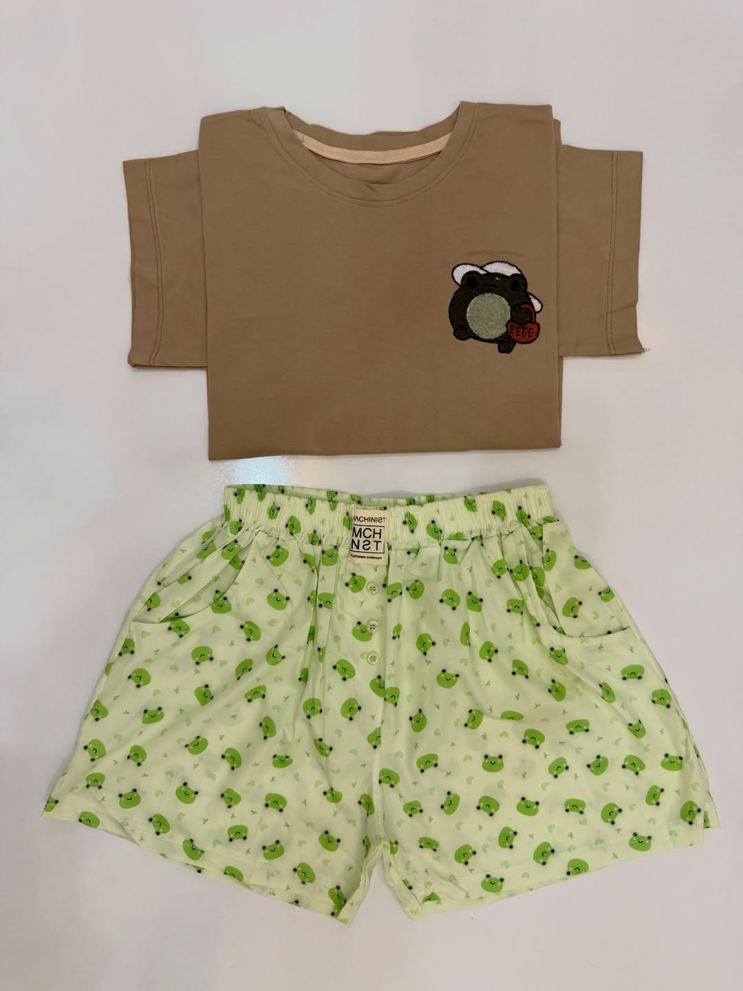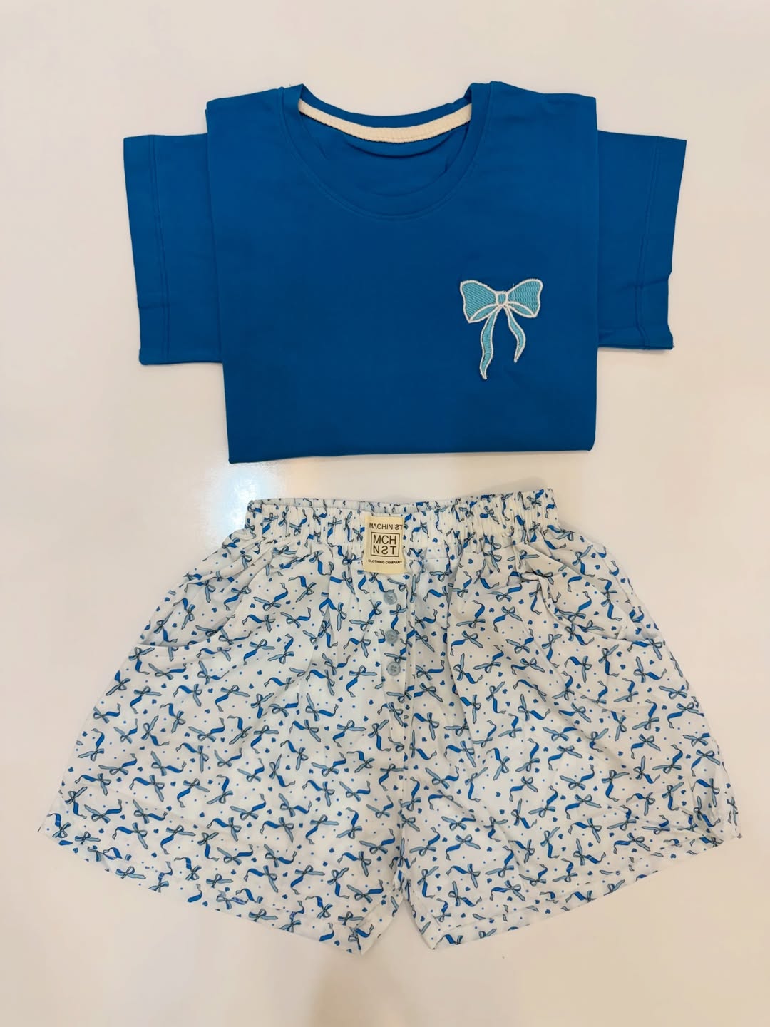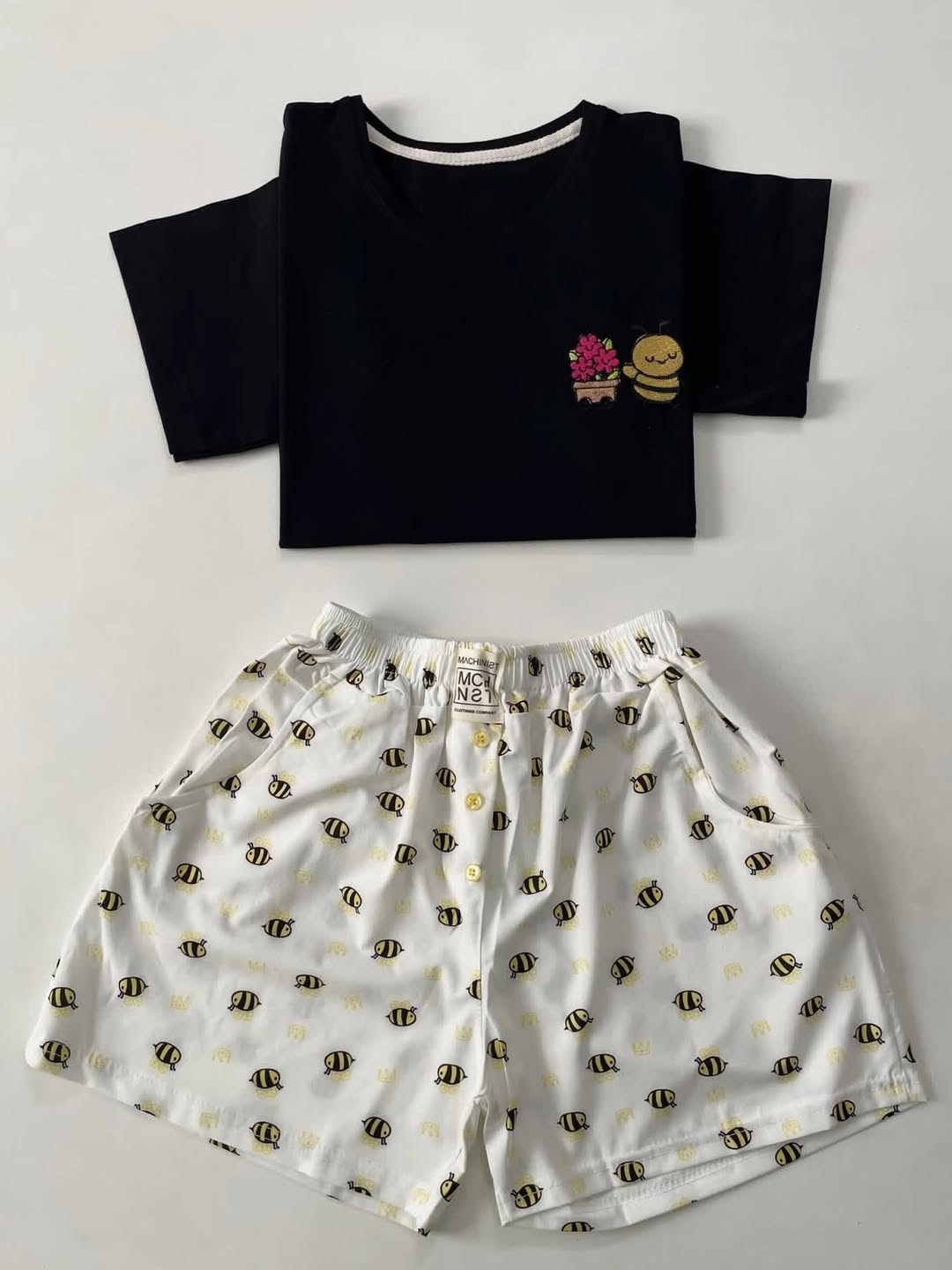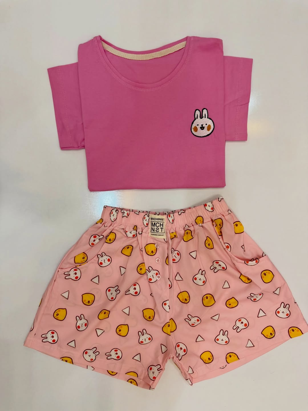 فری سایز ۴۴ جنس تیشرت نخ پنبه جنس شورتک کرپ نخی (بوگاتی) دور سینه ۱۰۰ قد جلو تیشرت ۵۵ قد پشت تیشرت ۶۰ قد شورتک ۳۸
