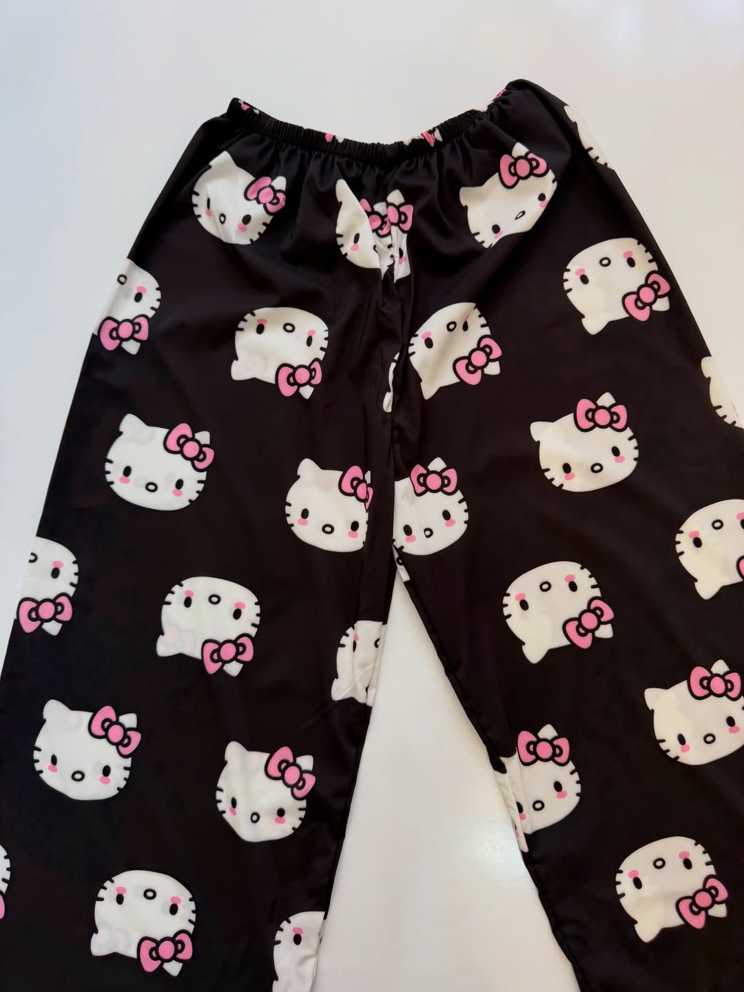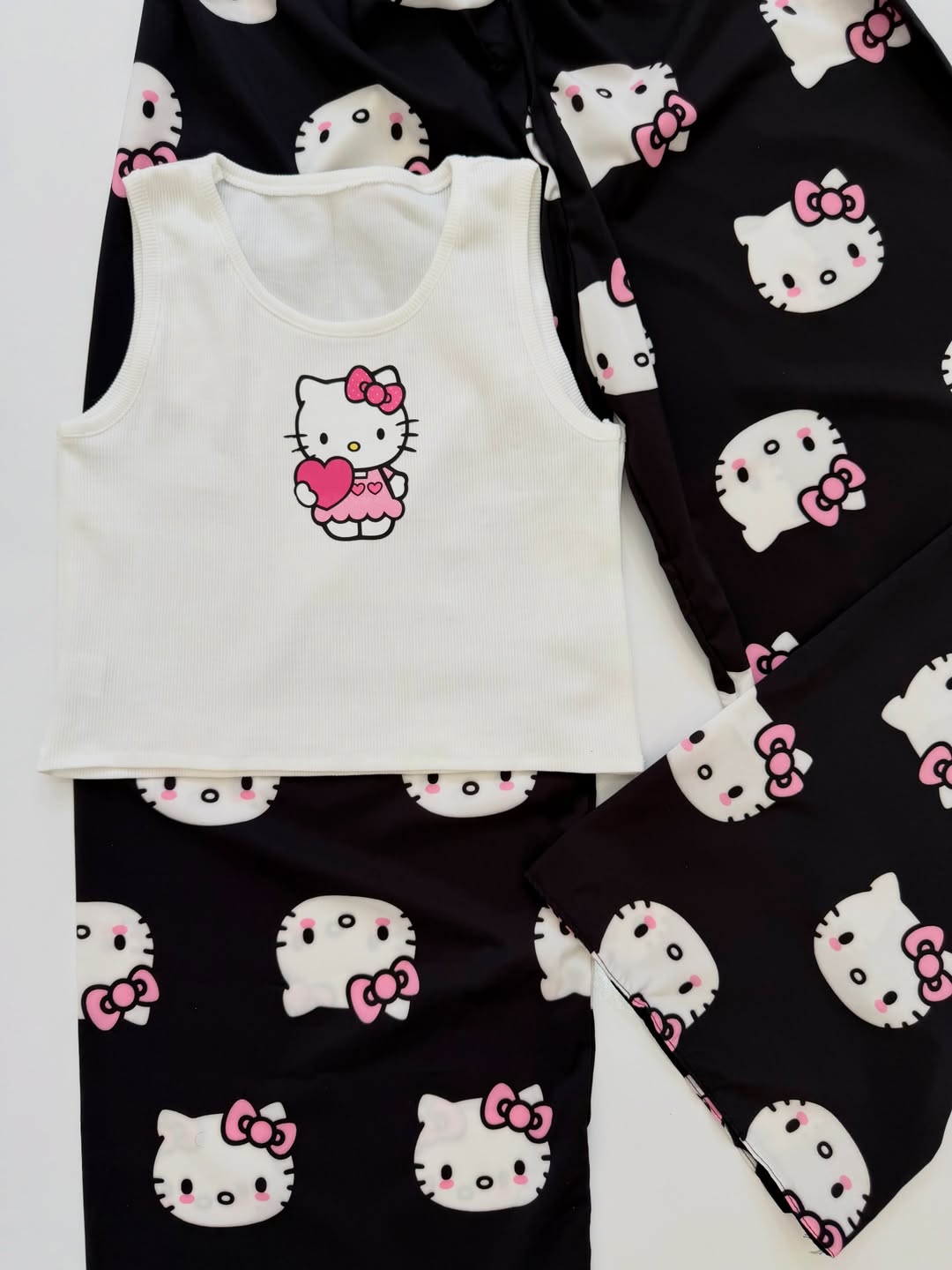 تاپ سفید با طرح کیتی و شلوار مشکی فری سایز