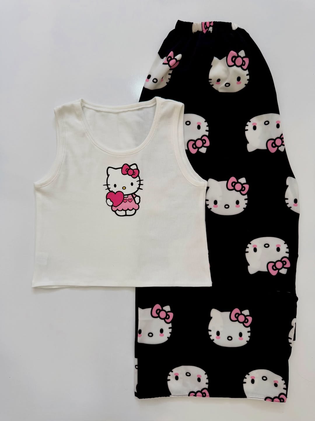 ناموجودتاپ سفید با طرح کیتی و شلوار مشکی فری سایز